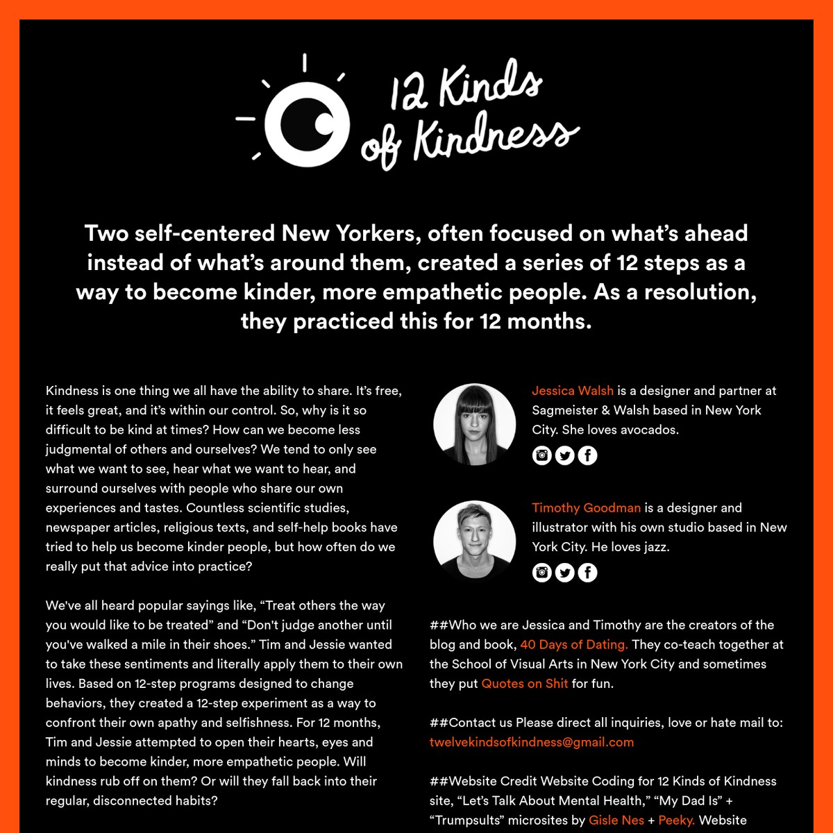 40 days of dating by jessica walsh and tim goodman . fed up with the new york dating scene designers jessica walsh and timothy goodman have launched ' 40 days of dating ' . 'the dating life in . . .