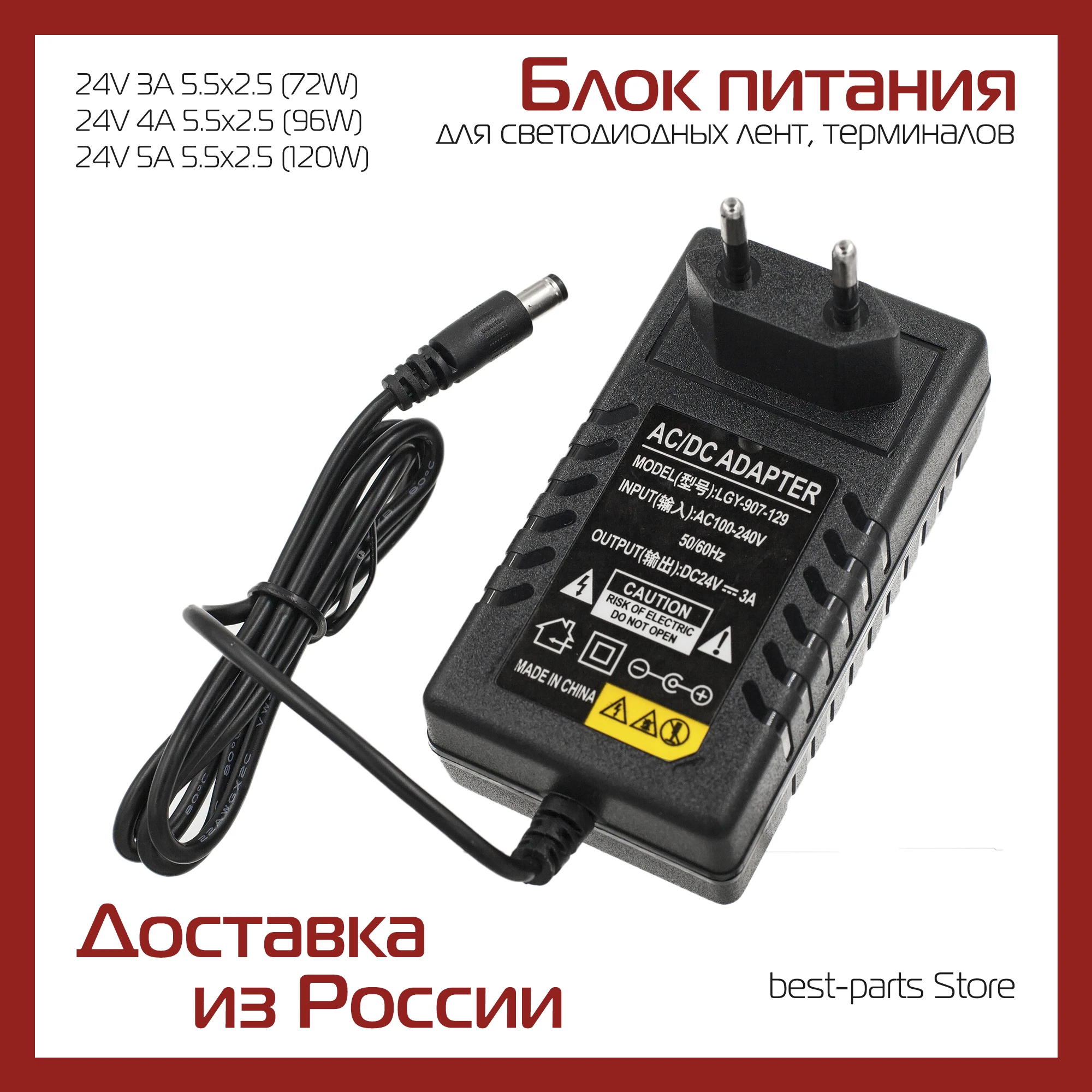 Блок питания 24V 5A 120W Коробка China штекер 5,5x2,5мм, шнур питания, длина 1,1м, 120Вт 300 . . .