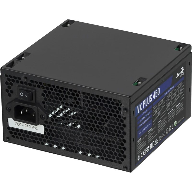 Aerocool VX PLUS 450 — Блок питания 450 Вт ATX 12V без PFC 24+8 pin, 24+4 pin, 20+4 pin Коннекторы питания видеокарты: 1x 6 / 8-pin разъем