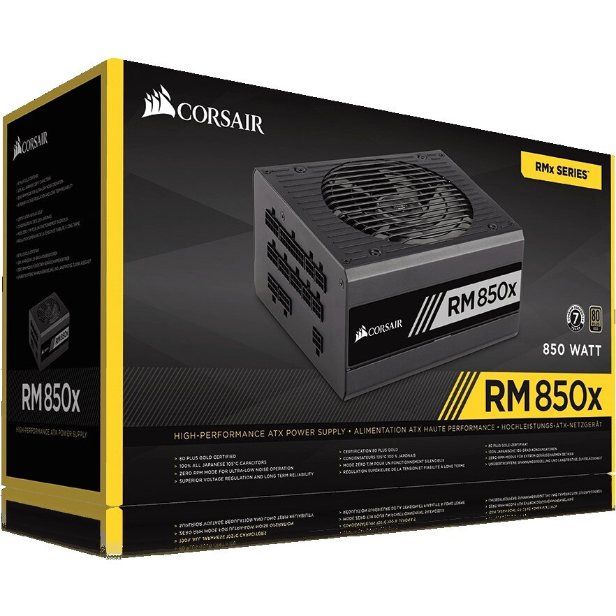 SKU CP -9020180- EU Полностью модульный блок питания RMx Series™ RM850x мощностью 850 Вт с сертификацией 80 PLUS® Gold . Полностью модульные блоки питания CORSAIR RM750x Series созданы из компонентов высочайшего качества, и . . .