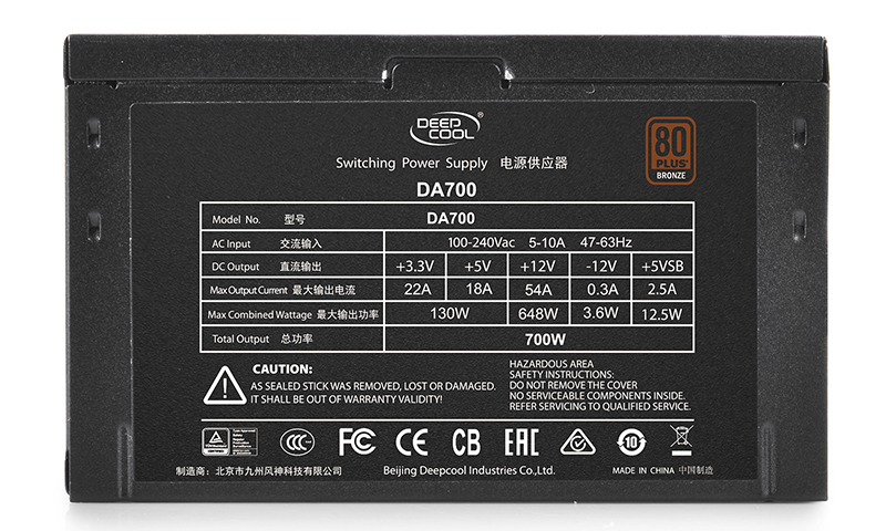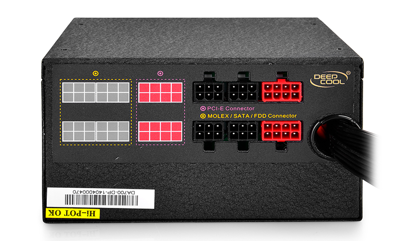 DeepCool DA700 ( DP-BZ-DA700N ) — Блок питания 700 Вт ATX 12V с активным PFC 24+8 pin, 24+4 pin, 20+4 pin Коннекторы питания видеокарты: 4x 6 / 8-pin разъема 80 PLUS Bronze