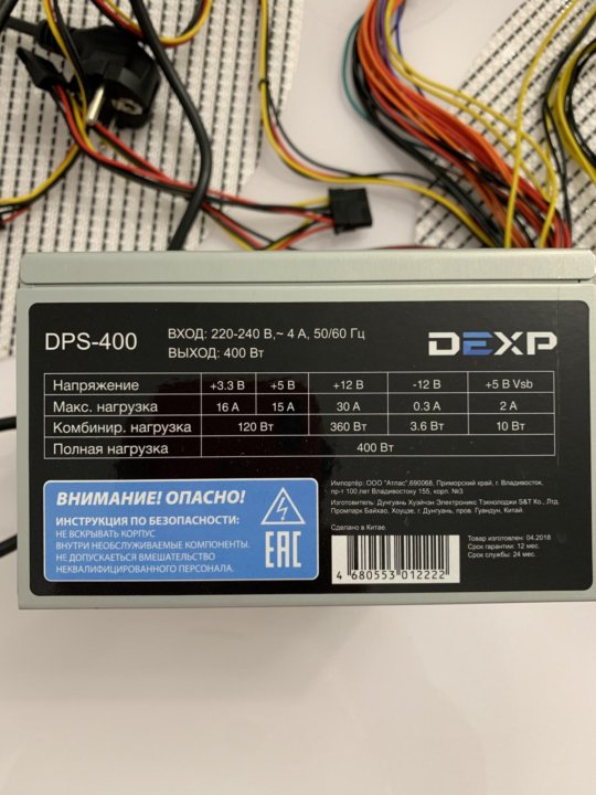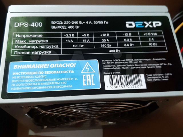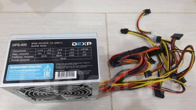 Блок питания DEXP DTS- 400 [4630017651153] 400 Вт, APFC, 20+4 pin, 1x 4 pin CPU, 3 SATA, 1x 6 pin PCI-E Код товара: 1024352 .