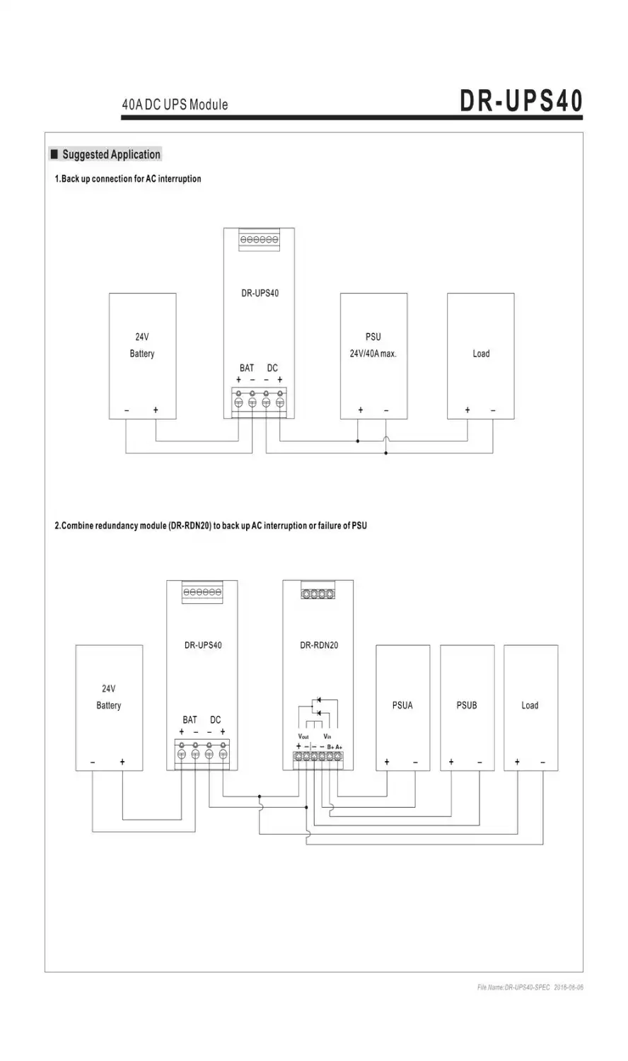 dr-ups40 , Контроллер аккумулятора системы бесперебойного питания на din рейку . dr-ups40 проверяет состояние аккумуляторной батареи, защищает батарею от обратного напряжения, автоматически подключает батарею при пропадании . . .