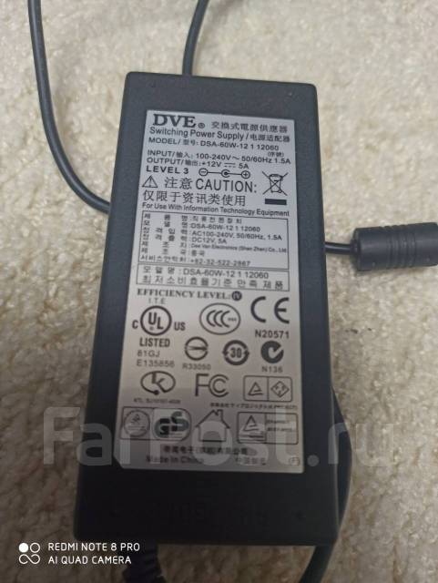 Описание . Импульсный блок питания в пластмассовом корпусе . Модель DVE DBA-15P-12 EU, 12v 1A (фактически 700ma)