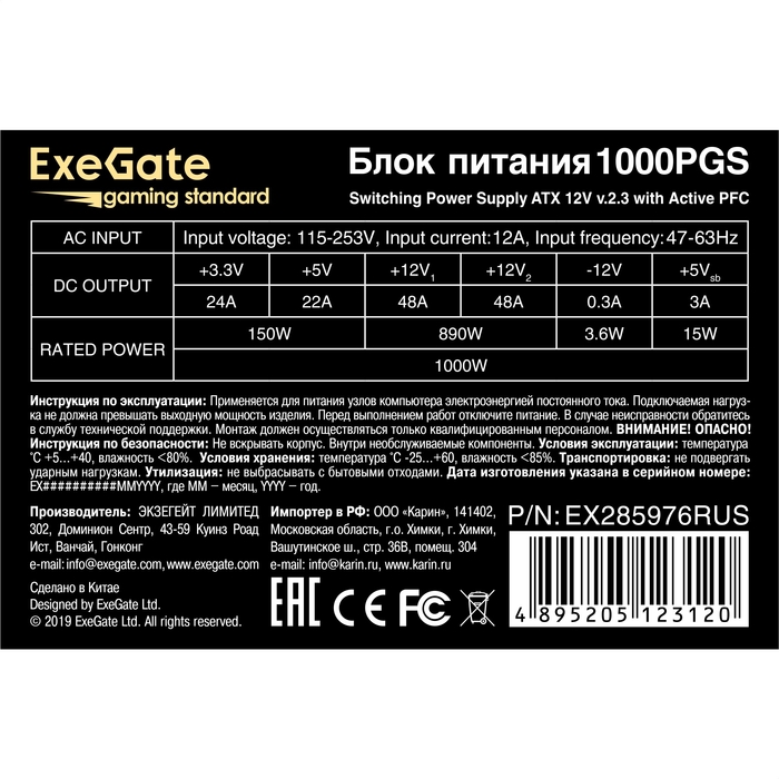 Блок питания 1000W ExeGate 1000PPX (EX222115RUS-S) с доставкой по Москве и России, лучшая цена — 4580 р ., гарантия . Звоните 8-800-500-29-58 и покупайте!