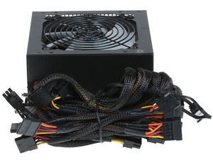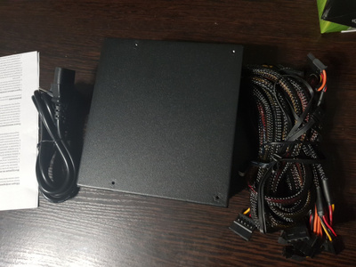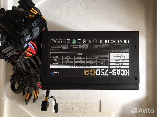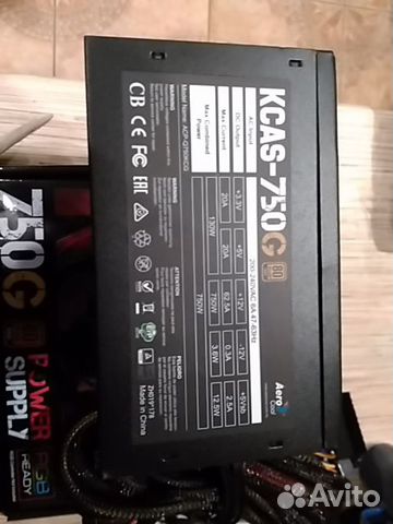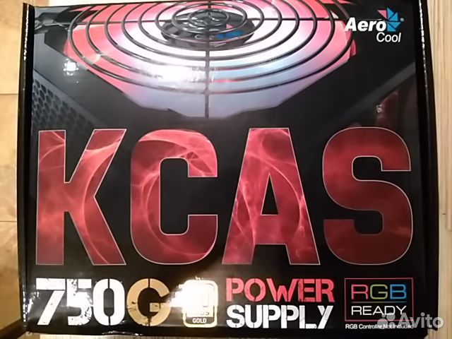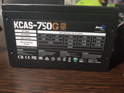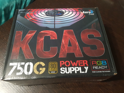 Блок питания от фирмы AerCool, модель Kcas 750G на 750 ватт с подсветкой . Блок питания не использовался, так как не подошёл по мощности .