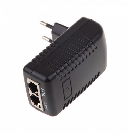 Блок питания с Power over Ethernet ( PoE ) инжектором 12 В . Данный адаптер используется для передачи данных, а также передачи электрических сигналов по единому кабелю на устройства Ethernet .