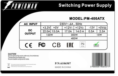 Powerman Power Supply 400W PM-400ATX