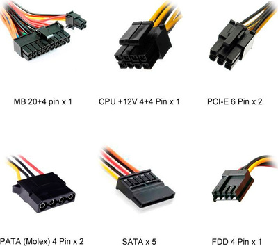 Powerman PM -600ATX-F-BL — Блок питания 600 Вт ATX 12V без PFC 24+8 pin, 24+4 pin, 20+4 pin Коннекторы питания видеокарты: 2x 6 / 8-pin разъема