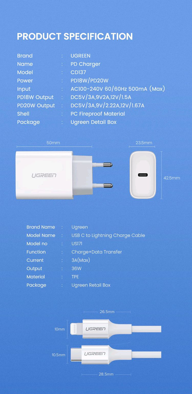 Зарядное устройство UGREEN CD137 with PD 20W - . . . Максимальный ток 20W . Сделан он качественно, . . . Так что всем владельцам Айфонов могу рекомендовать этот блок питания к покупке .