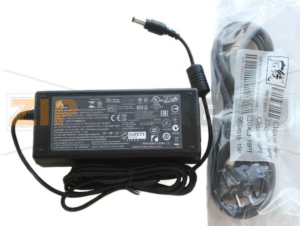 Н связан с принтерами, произведенными компанией Zebra , и кабелем питания переменного тока . 2 . . . . Блок питания 60 Вт LP 2824 Z LP 2824 Plus LP 2824 Plus CVS 808113-002 или P1028888-007