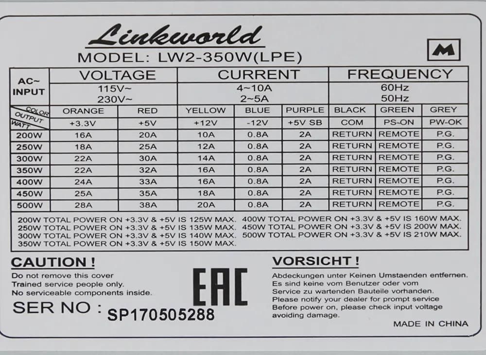 Блок питания 350w linkworld 128 фото