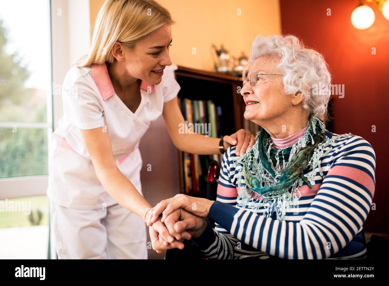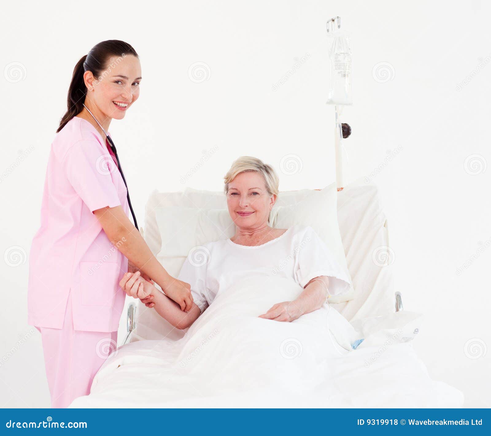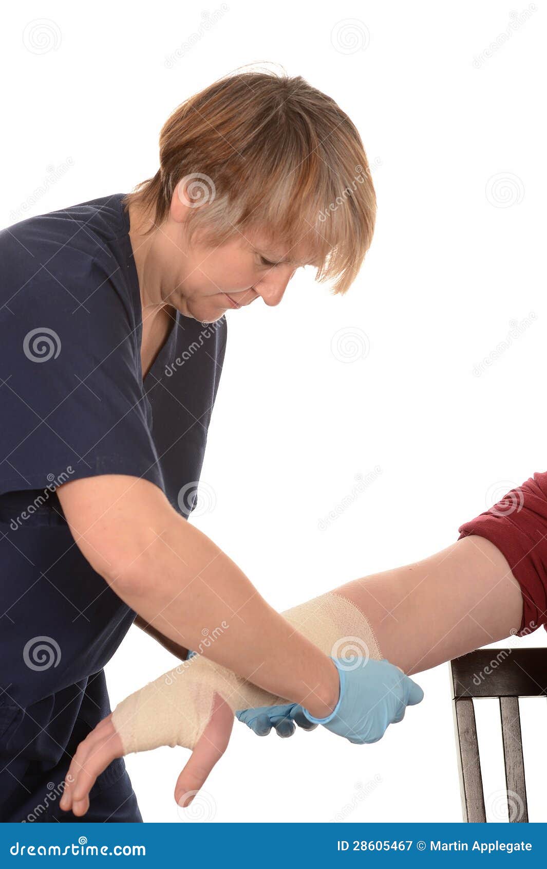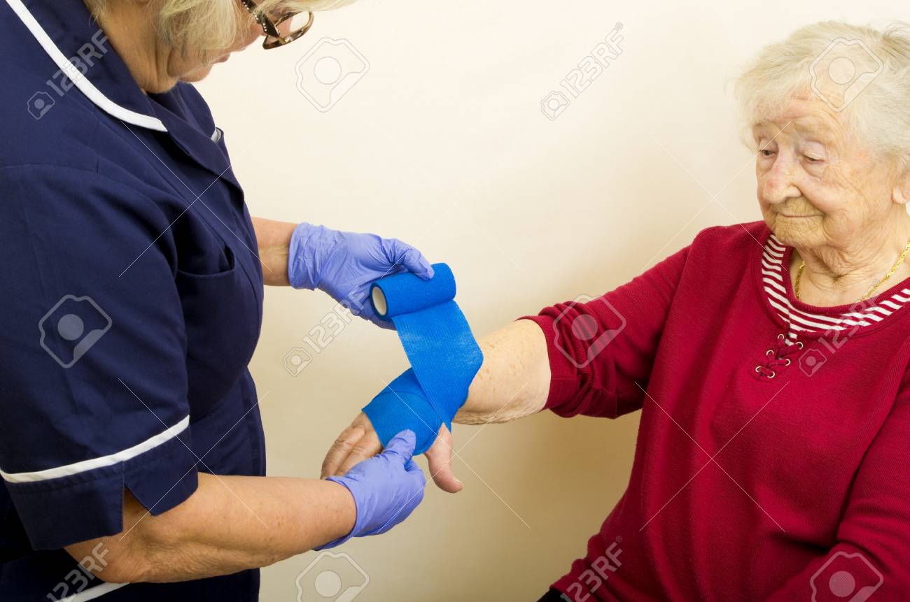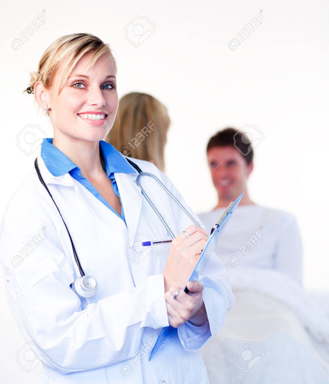 Blonde Krankenschwester behandelt Patienten