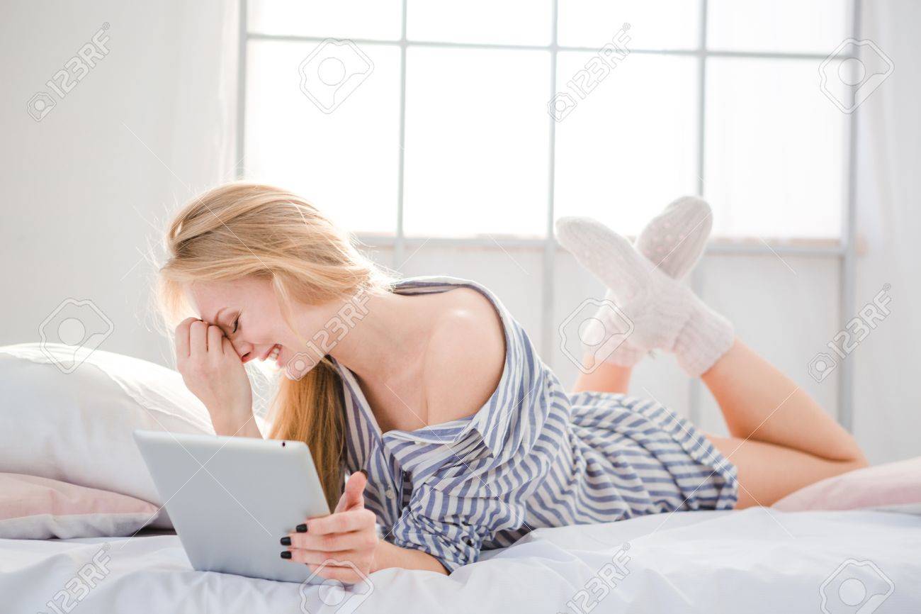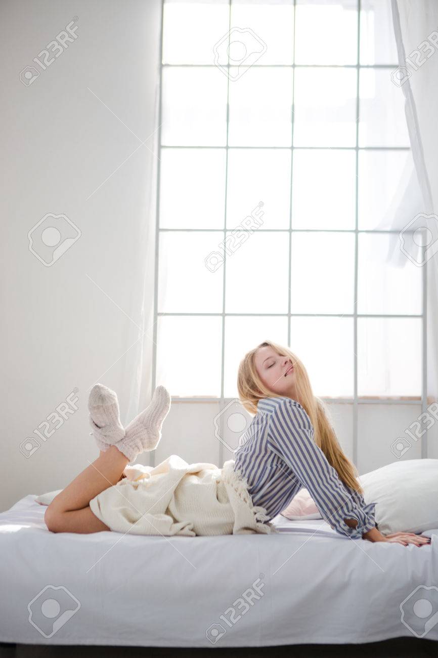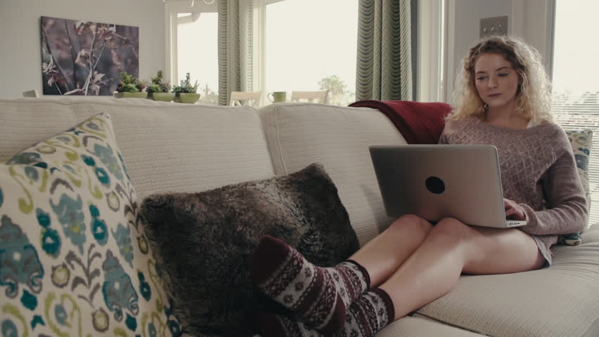 1329673493">10/stock-photo-beautiful-blonde-woman-sitting-on-couch-in-black-tank-and-sweat-pants-and-bright-socks-eating-a-95551036.jpg">
