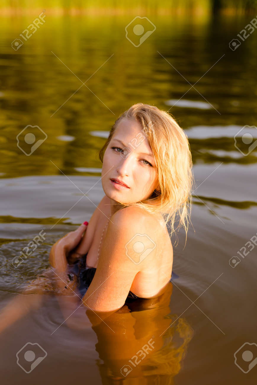 Blonde Teen beim Baden