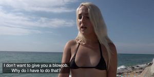 Blonde giving wearing bikini