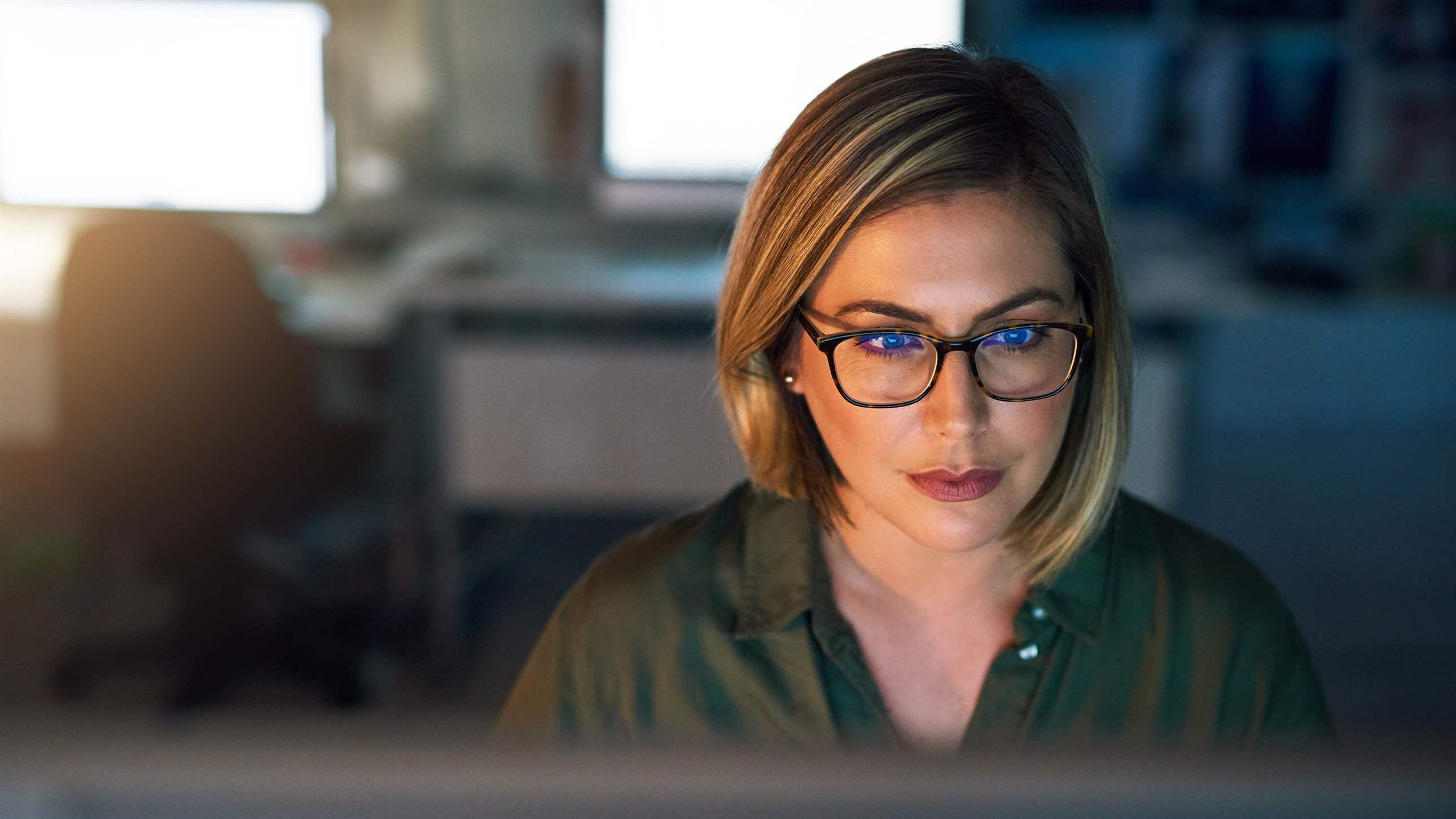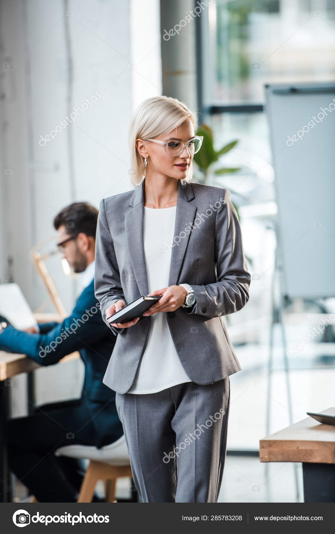 Blonde glasses office