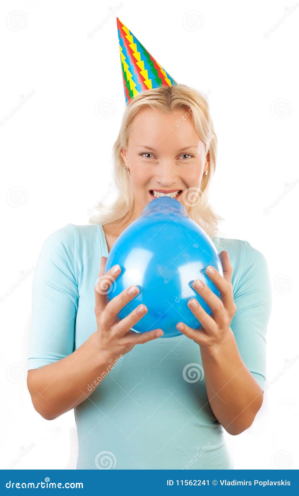 Blonde has precious inflatable balloons