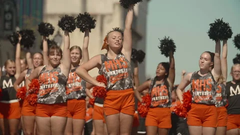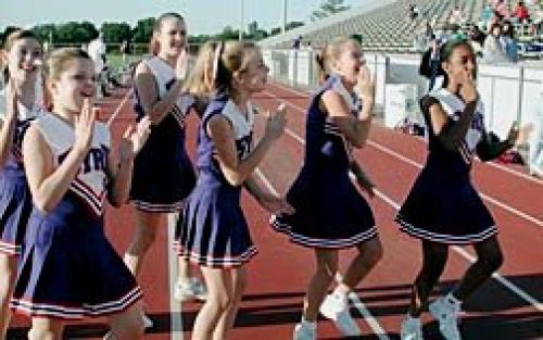 Blonde high school cheerleaders