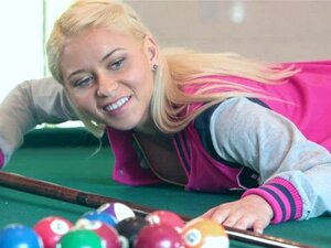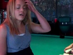 Blonde reibt sich das Fickloch am Billardtisch