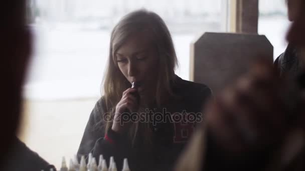 Young blonde smokes a long cigarette - YouTube