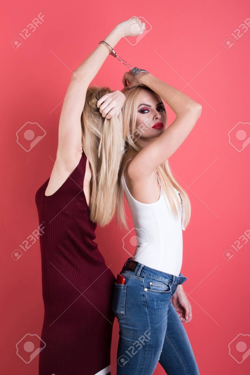 Two lesbians sisters twins beautiful curly blonde young woman in stylish dress holding hands in the summer park sunset . Photo about friendship, hair, freedom, lgbt, friends - 160090610