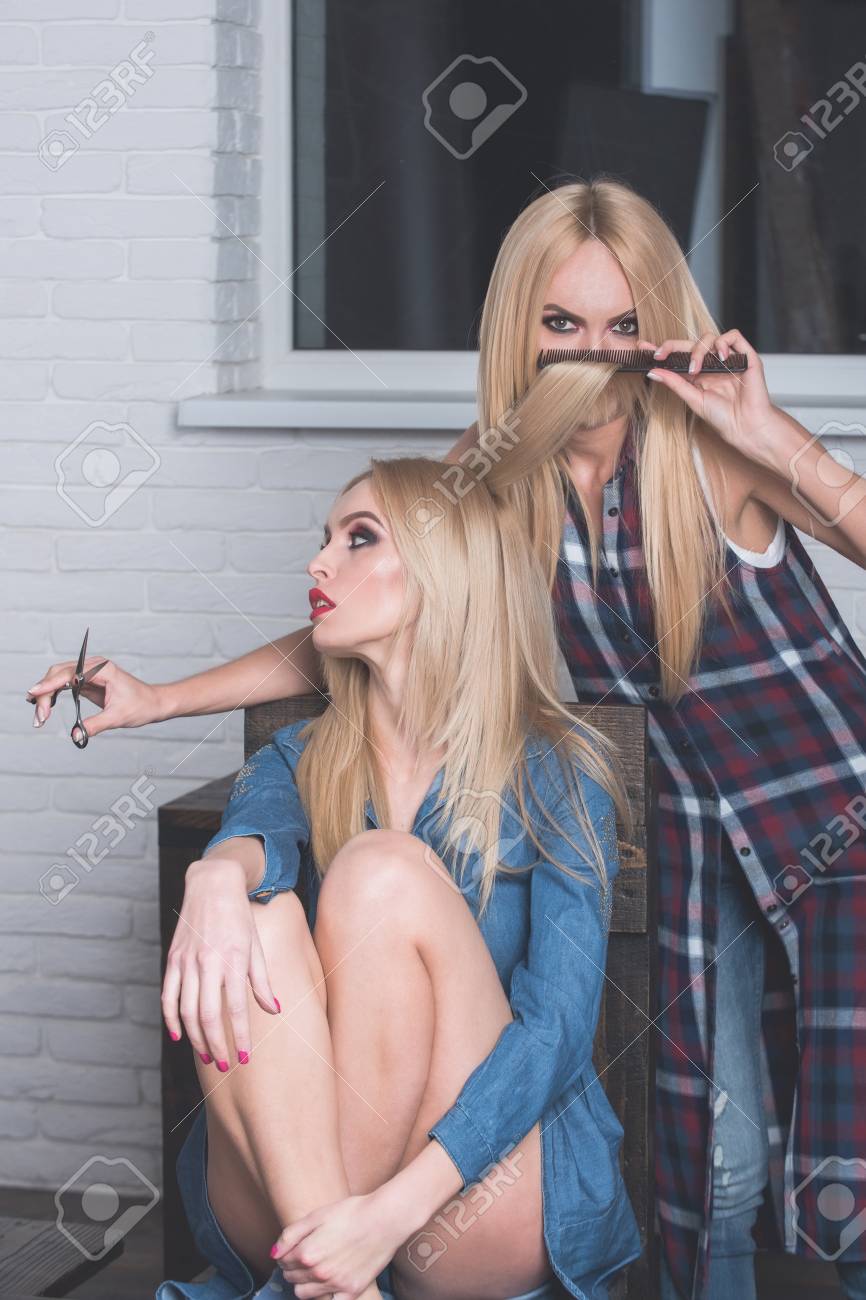 Two Lesbians Sisters Twins Beautiful Curly Blonde Young . . .
