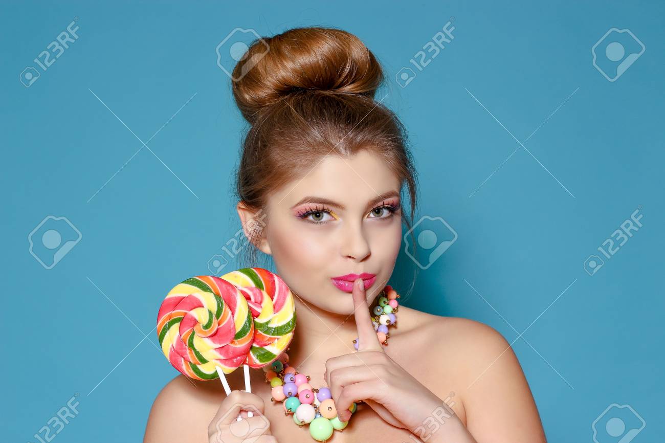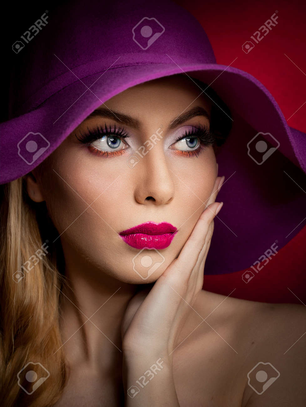 Blondine auf Farbigem