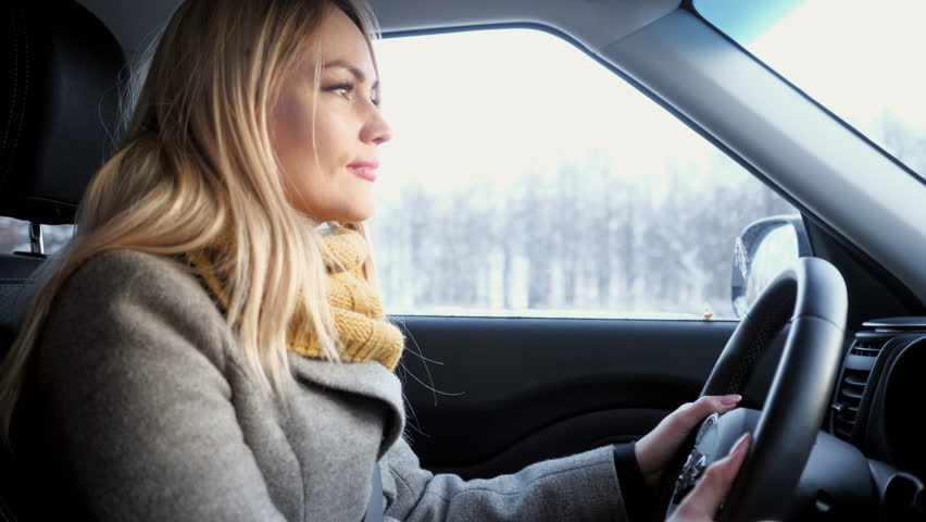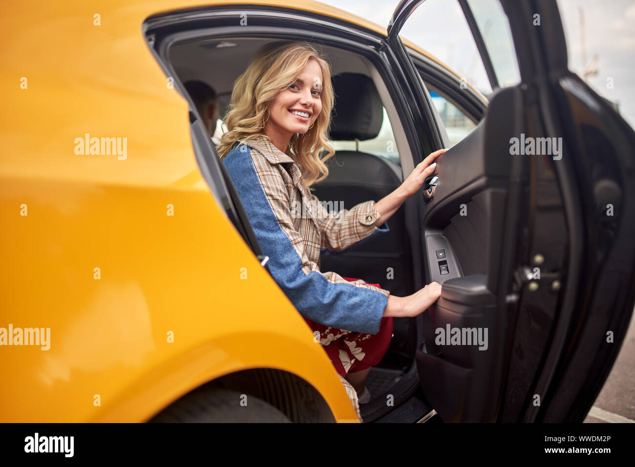 Blondine auf Rücksitz