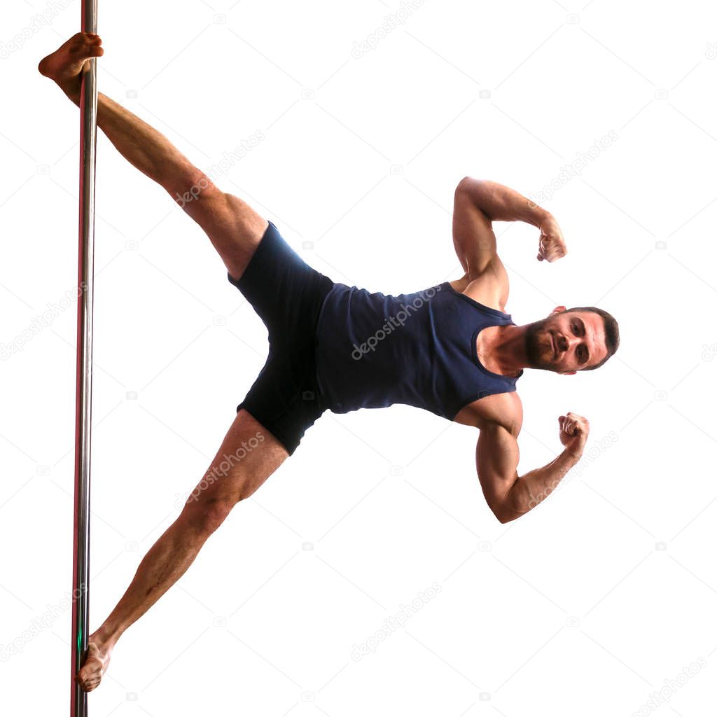 mimagephotos Чувственная блондинка танцует на шесте mimagephotos AllaSerebrina Гибкая молодая женщина танцует с шестом на голубом