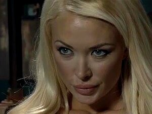 Schöne blonde Mädchen Aleska Diamant ruft genagelt, von einem Fetischisten