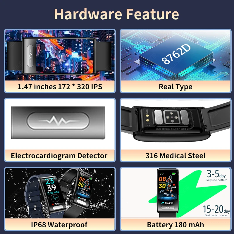 GSTTplvhHere you can buy Blood Sugar Smart Watch Sports ECG Smart Watch Full Touch Screen Men Bluetooth Call Photography Music Remote Control Smart Band with free delivery to your post office.