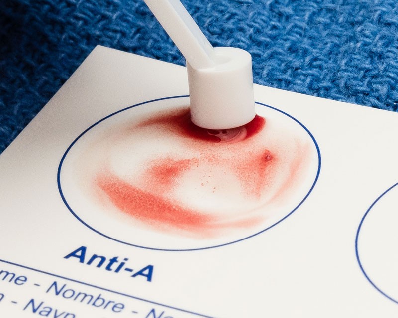 ABO blood type calculator can be used to predict possibilities of paternity . The calculator is used to determine either: The ABO blood type of the child when the blood type of the mother and the father are known (top chart), or . The ABO blood type of the father if the blood type of the mother and the child are known (bottom chart) .