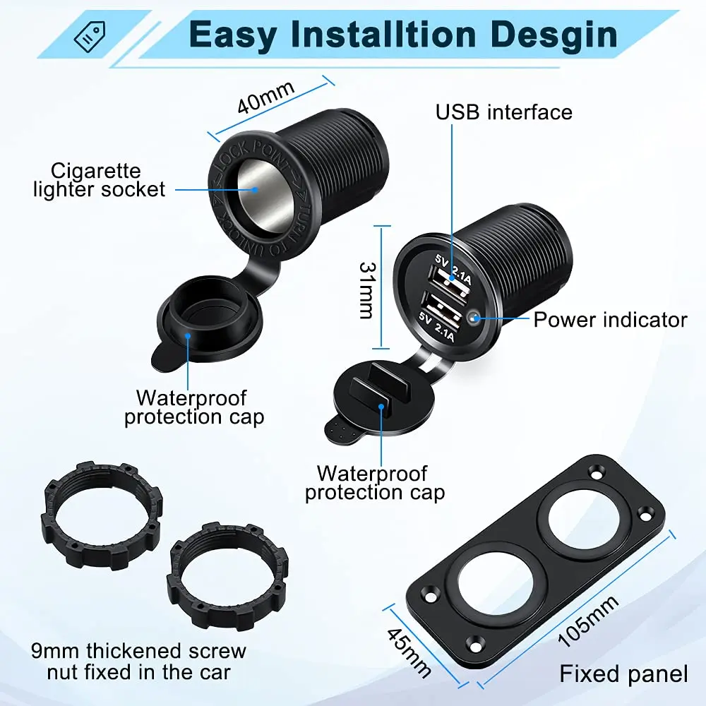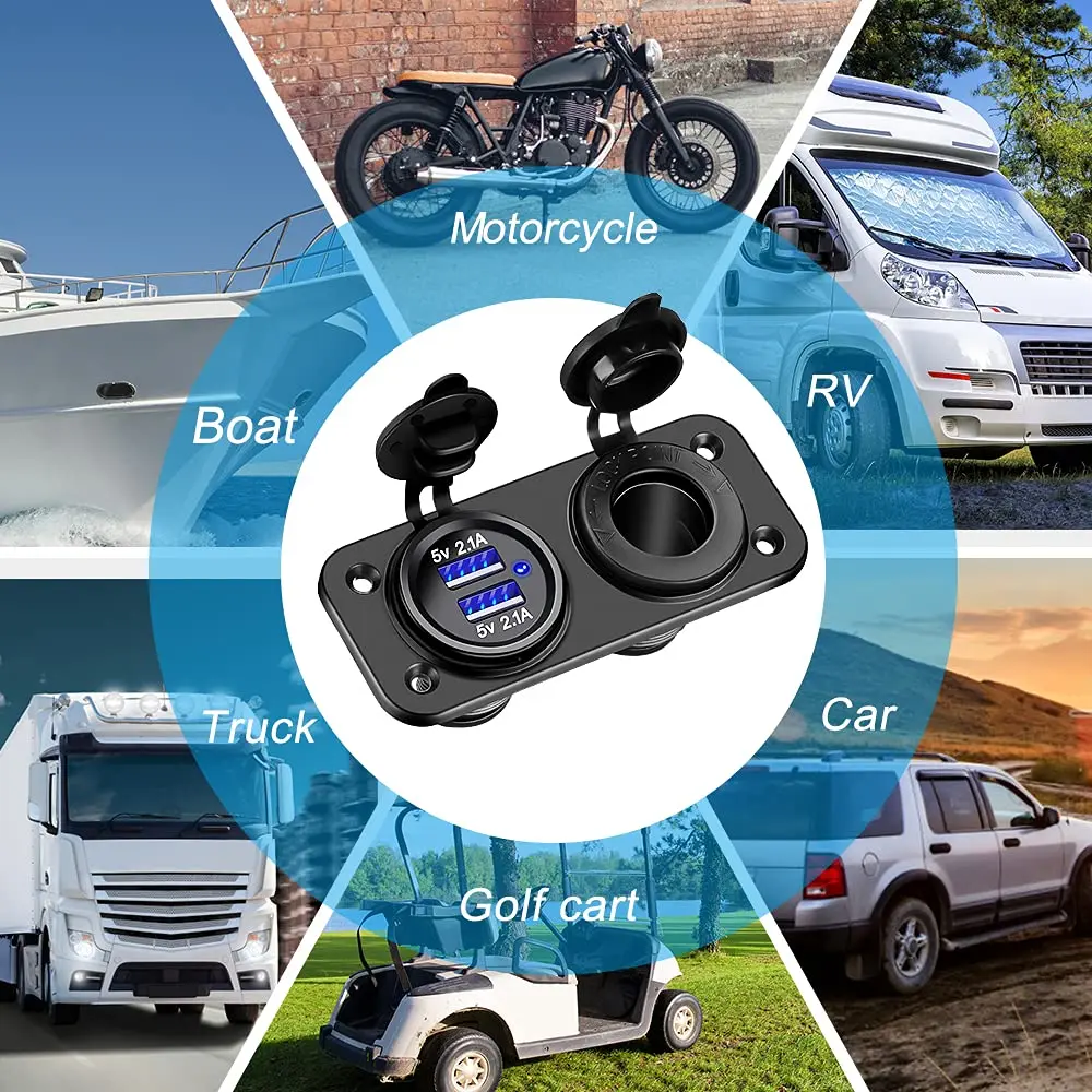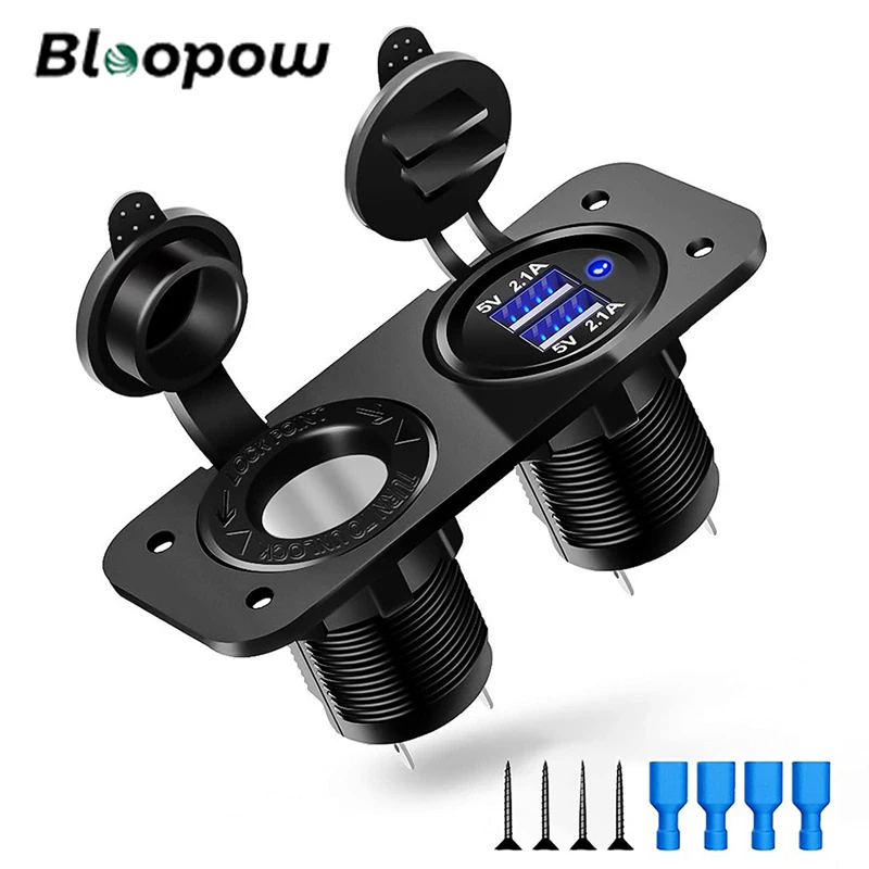 Bloopow 12V Dual USB Cigarette Lighter Socket Outlet Splitter Waterproof Fast Charger Power Socket for Car Boat Marine RV - Купить с бесплатной доставкой