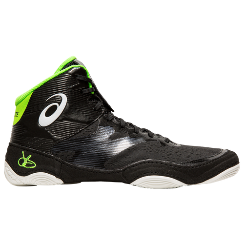 ASICS Men's Black& White Split Second Wide Wrestling Shoe size 9 .5 . Whether you're new to wrestling or on your way to the Olympics . This shoe works for you . A split sole means flexible traction, open mesh uppers offer durable comfort, and the integrated lace cover complies with all regulations .