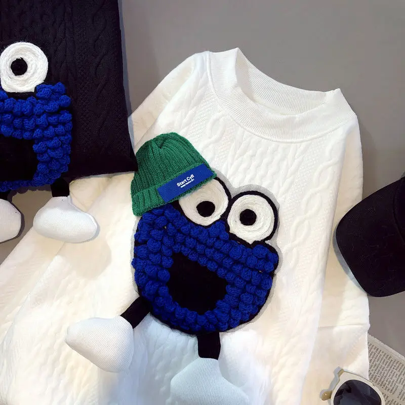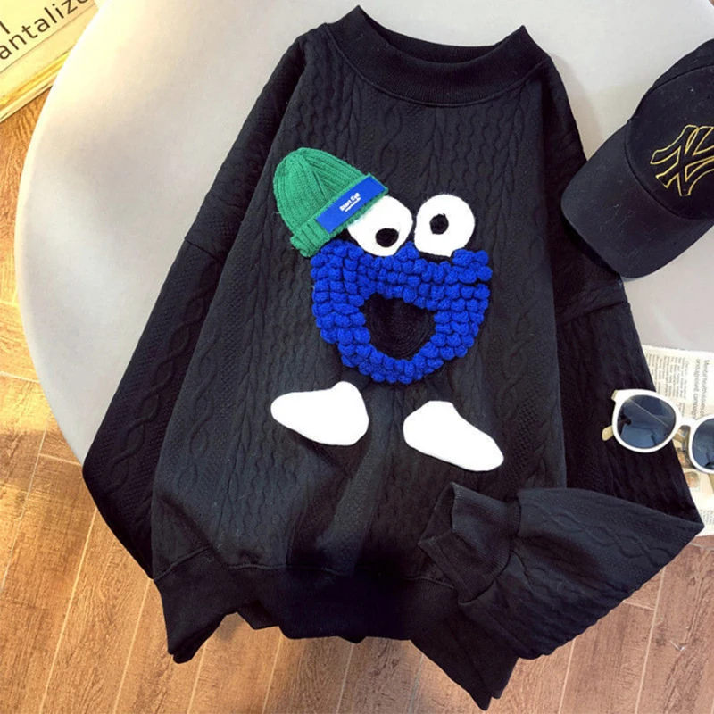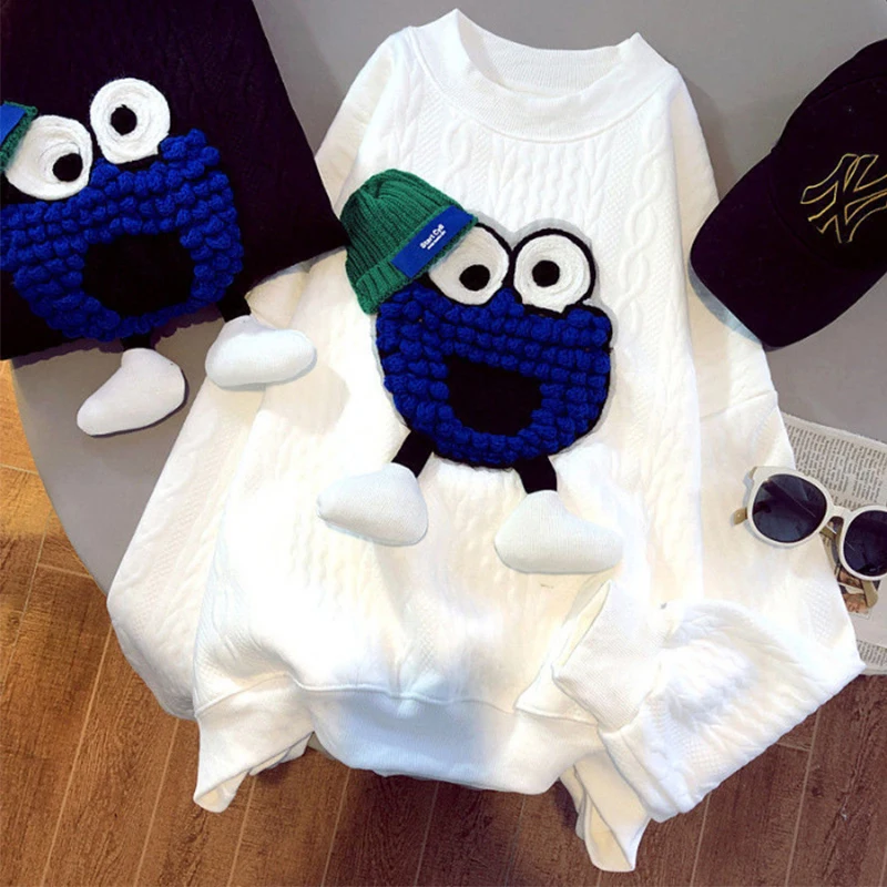 oYMvAICPOOHere you can buy Blue Cartoon Sweatshirt Spring New Cartoon Embroidery Design Sense Round Neck Loose Street Style Pullover with free delivery to your post office.