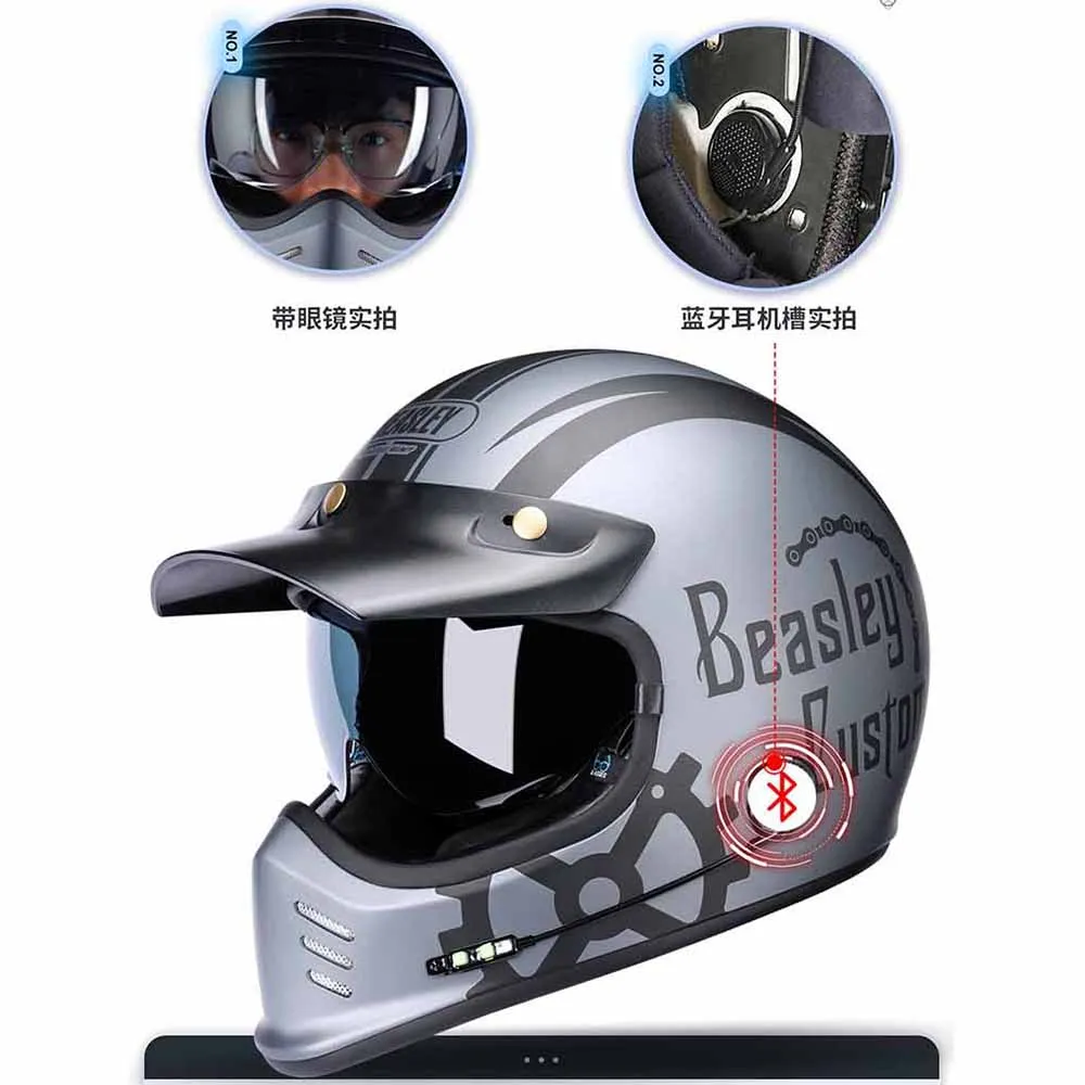 Blue Gear Vintage Full Face Racing Helmets Wear-Resistant Motorcycle Accessories Breathable Motocross Kask Anti-Fall Protection - Купить с бесплатной доставкой