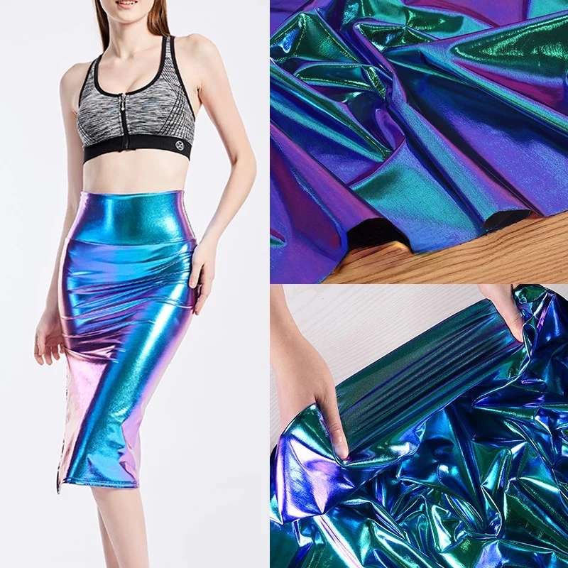 Blue and Purple Elastic Dazzling Laser Magic Color Waterproof Fabric Reflective Two-Color Fabric for Student Graduation Design - Купить с бесплатной доставкой