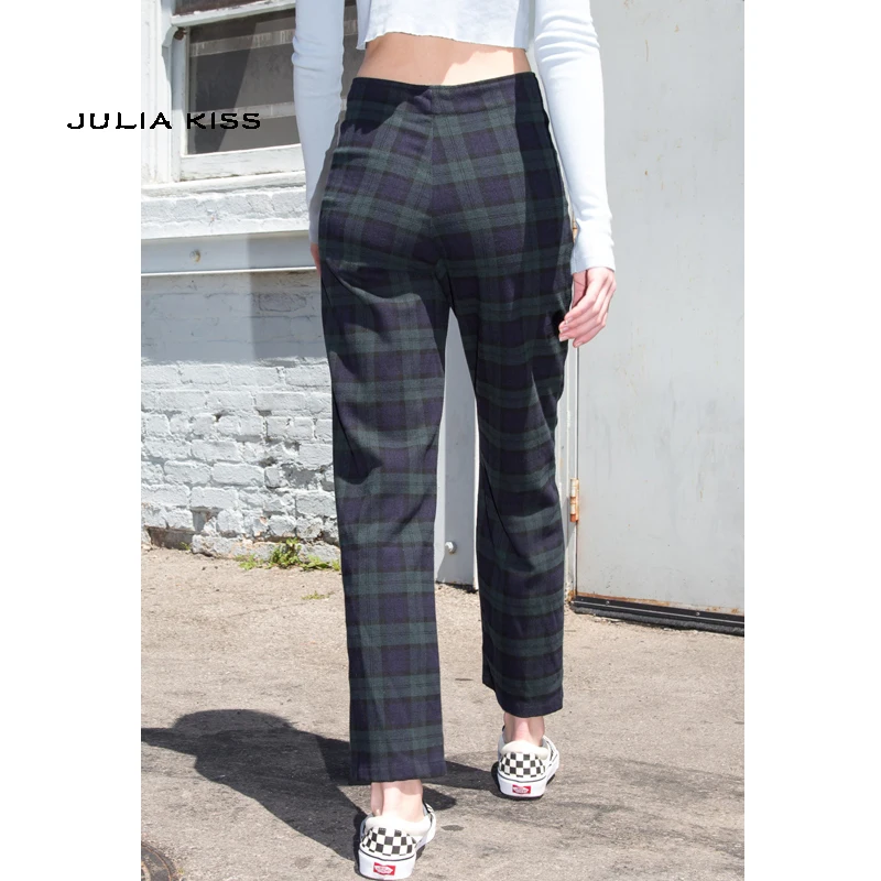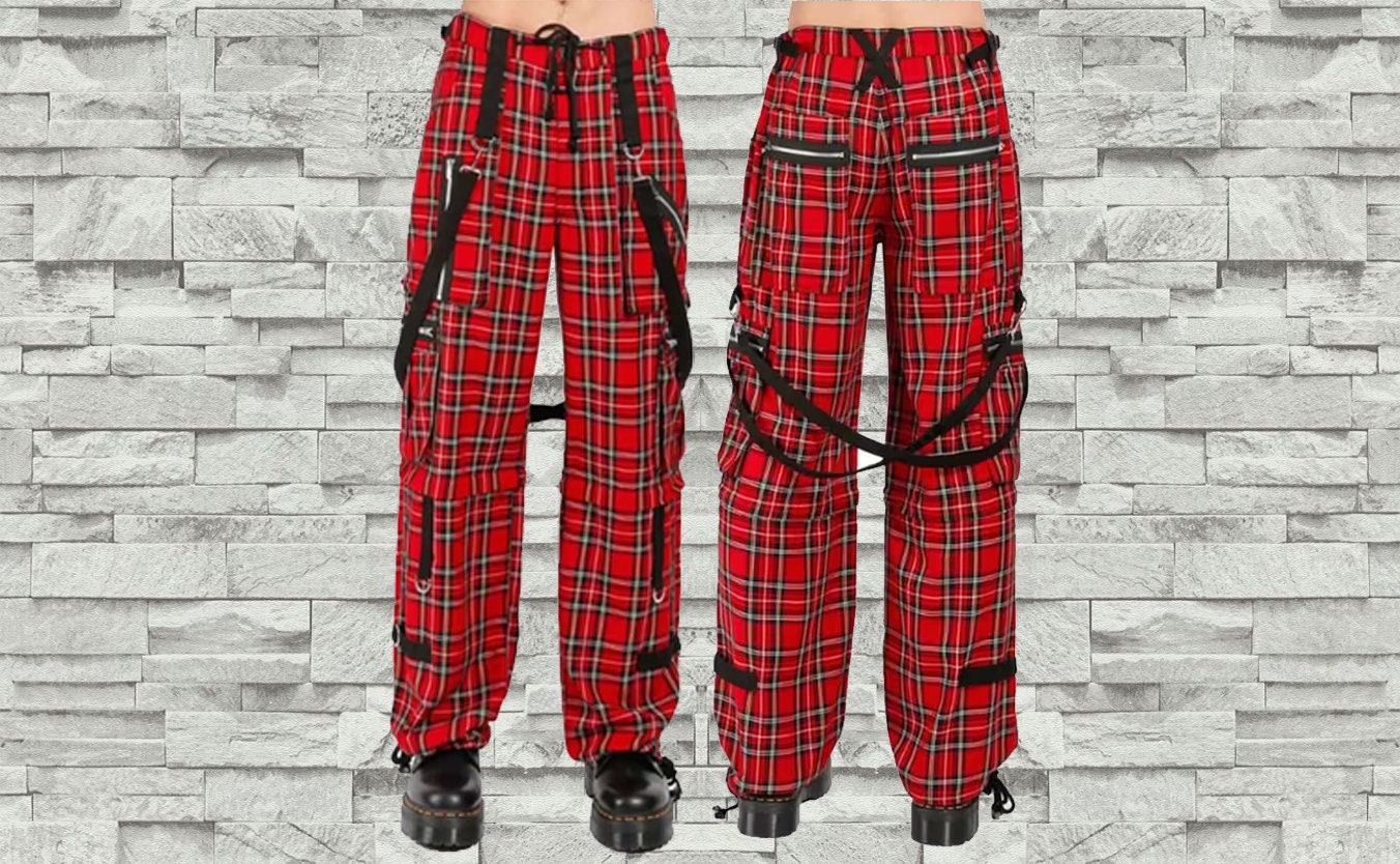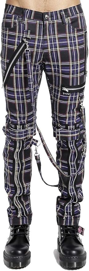 Blue plaid bondage pants