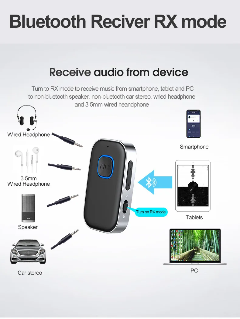 XHvzRxqyLooked for Bluetooth 5.0 Transmitting and Receiving Two-in-One Car Bluetooth Audio Receiver AUX TV Transmitter 3.5mm interface for a long time, but could not find it? Bring to your attention Bluetooth 5.0 Transmitting and Receiving Two-in-One Car Bluetooth Audio Receiver AUX TV Transmitter 3.5mm interface with the best price!