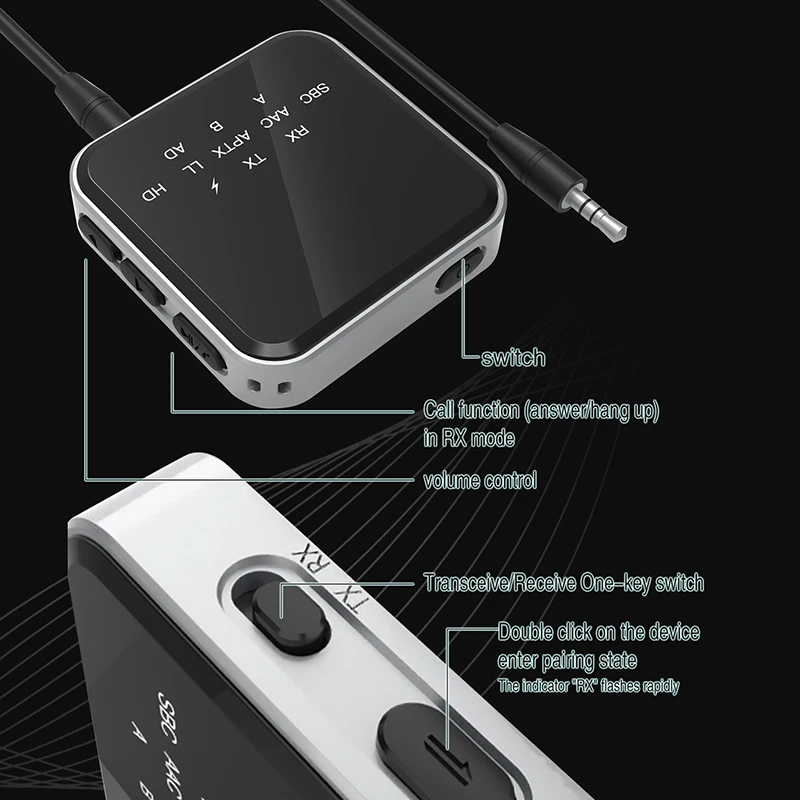 Bluetooth 5.2 Transmitter Receiver 2-In-1 aptX LL HD Adaptive 3.5MM AUX Multipoint Wireless Audio Adapter For TV PC Car Kit - Купить с бесплатной доставкой