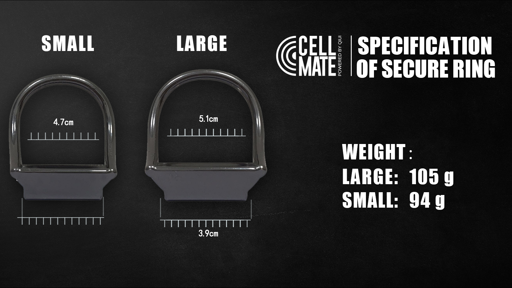 QIUI believes that a true chastity experience is one that does not allow the wearer to have any control over. Featuring the all-new black edition CELLMATE chastity cage by QIUI. Improved model from the original QIUI Bluetooth chastity cage. Size dimensions: Please scroll through the photos for the size measurements.