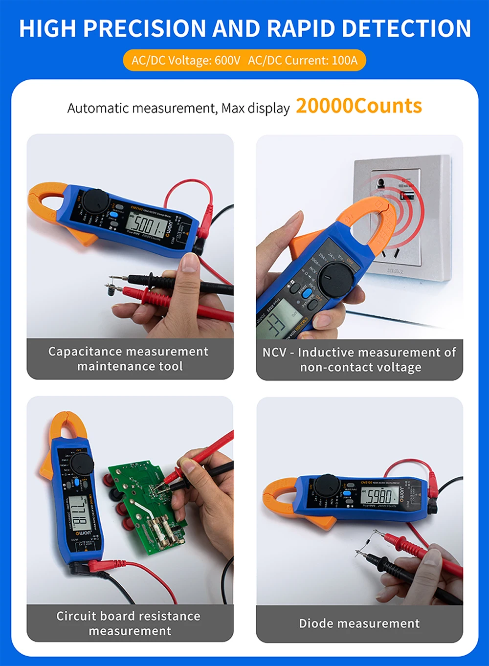 sLCgfCbWFFЗдесь вы сможете купить Bluetooth Clamp Meter 100A 600V AC/DC Voltmeter Ammeter 20000 Counts True RMS Capacitance Resistance Diode Clamp Multimeter с бесплатной доставкой до вашего почтового отделения.