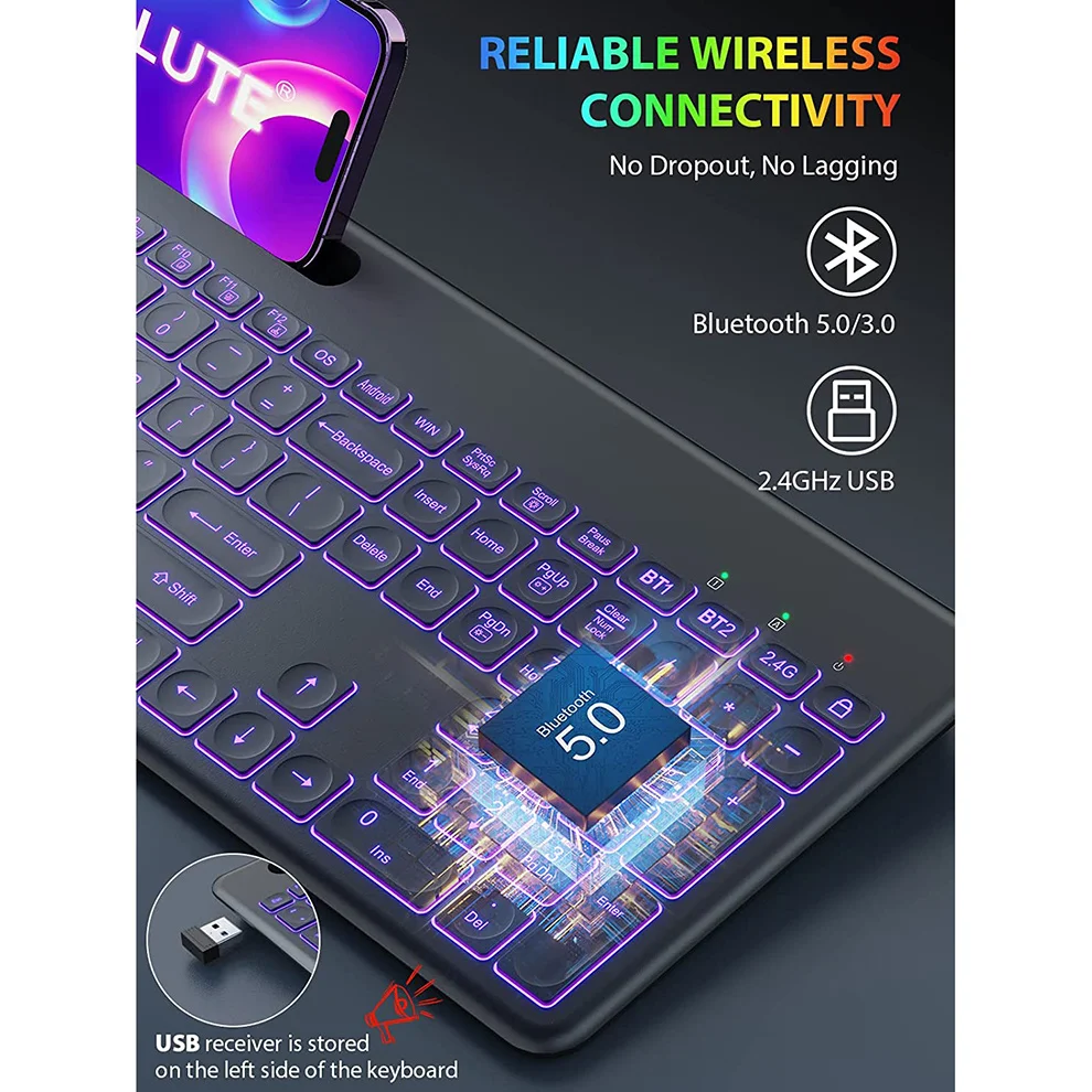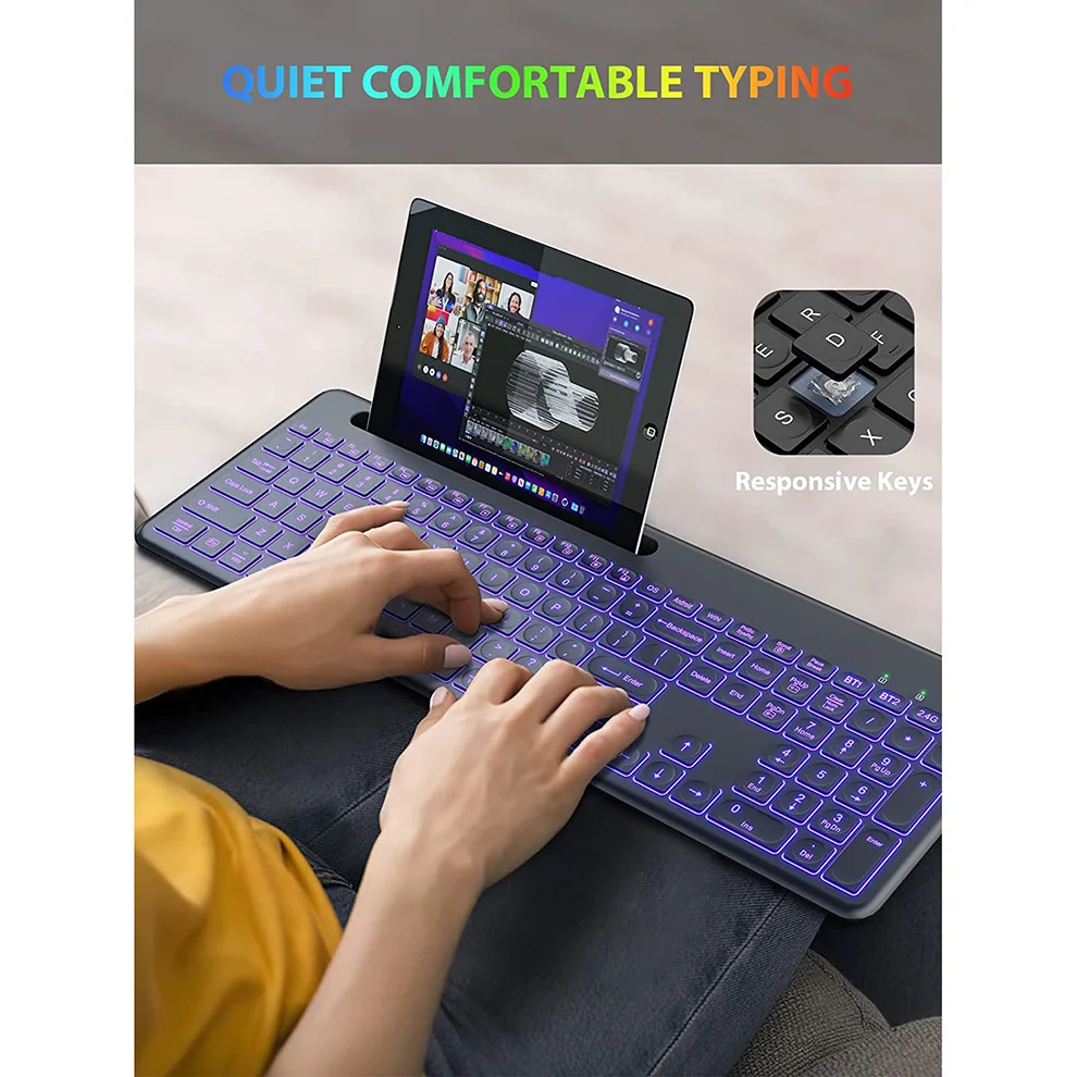 ktrOpJPvЗдесь вы сможете купить Bluetooth Wireless Keyboard and Mouse Combos Backlit 2.4G Keyboard & Mouse Rechargeable Multi-Device Keyboard with Phone Holder с бесплатной доставкой до вашего почтового отделения.