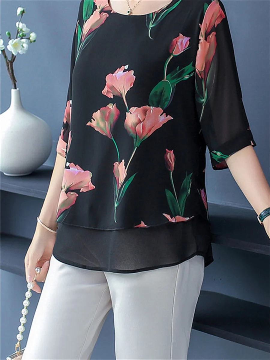 Блузка с большими цветами 143 фото
