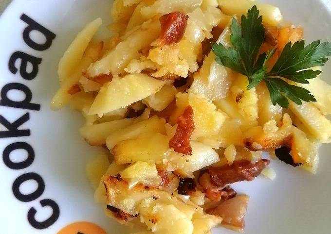 Отварной картофель с жареным салом и луком - рецепты с . . .