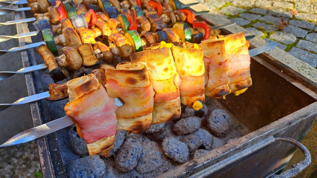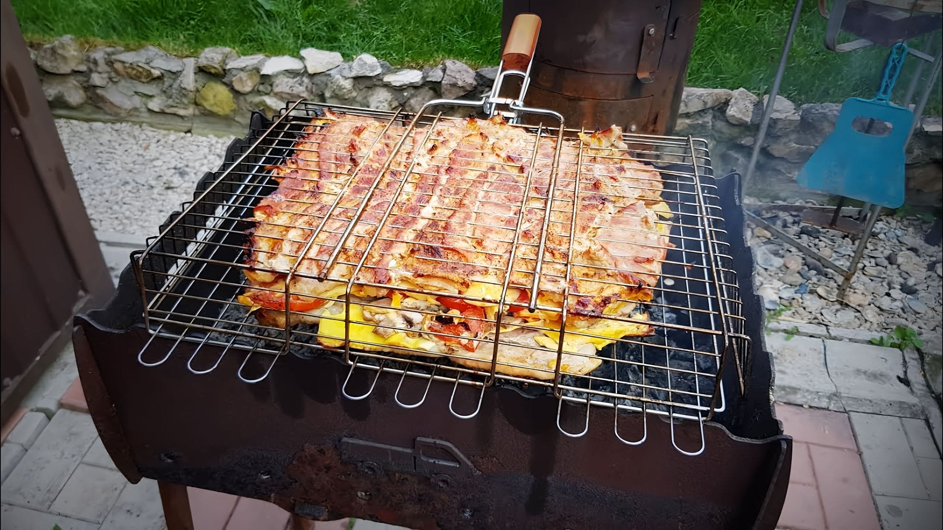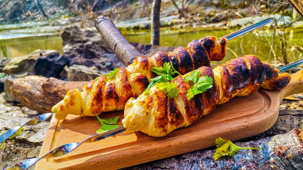 Блюда в мангале на костре
