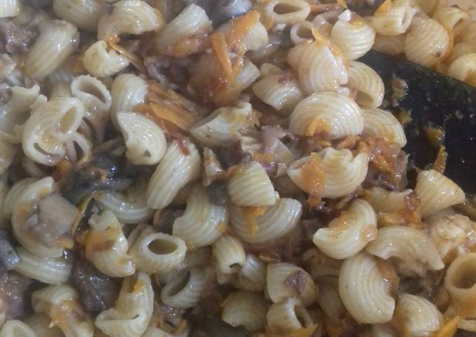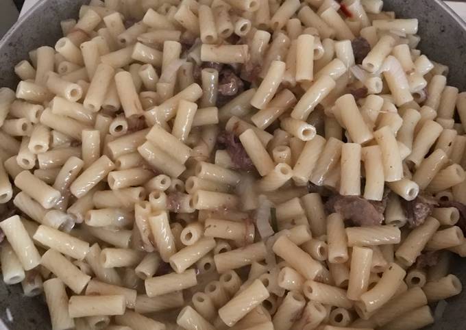 Макароны с тушенкой на сковороде - отличное блюдо для семейного ужина, которое вы приготовите буквально за 20 минут . Подавайте его горячим . . . . Паста с тушенкой фото рецепт .