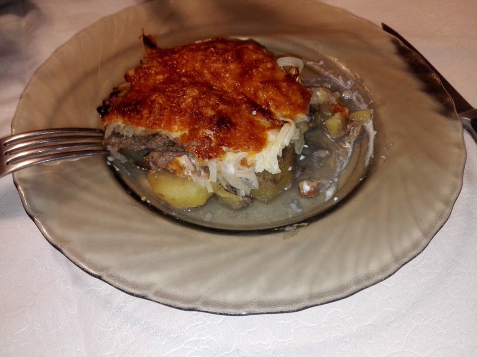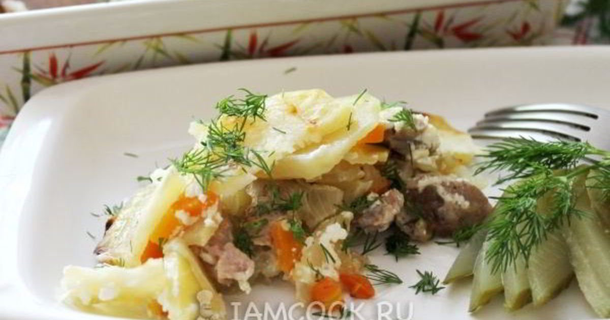 Блюдо слоями с мясом