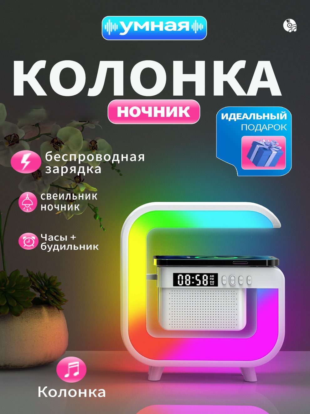 Блютуз колонка ночник